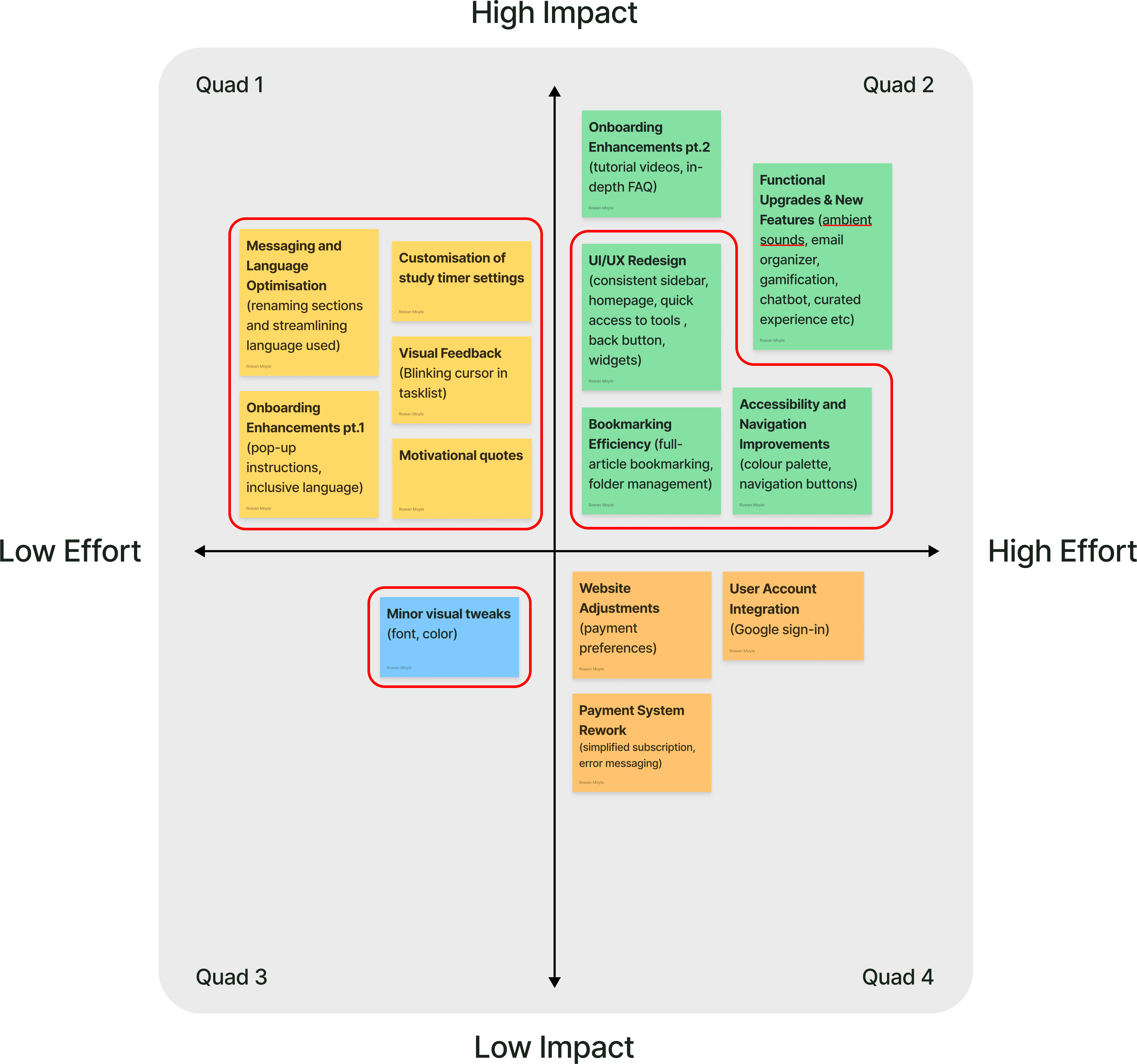 The discovery and development phase of this project momentarily felt quite open-ended. I observed the power of using an impact-effort matrix and collaborative project management tools like Trello to focus our design strategy and ensure that all designers and stakeholders have a shared vision. In this case, there was potential for more extensive changes like gamification and AI onboarding. Kumo openly envisioned some of these changes being made. However, we had to realistically assess what could be achieved within the timeframe available and how to make Kumo a successful, simple product that could compete with other single-function tools currently on the market. I believe we achieved so much in the timeframe, aided by our strong collaboration.