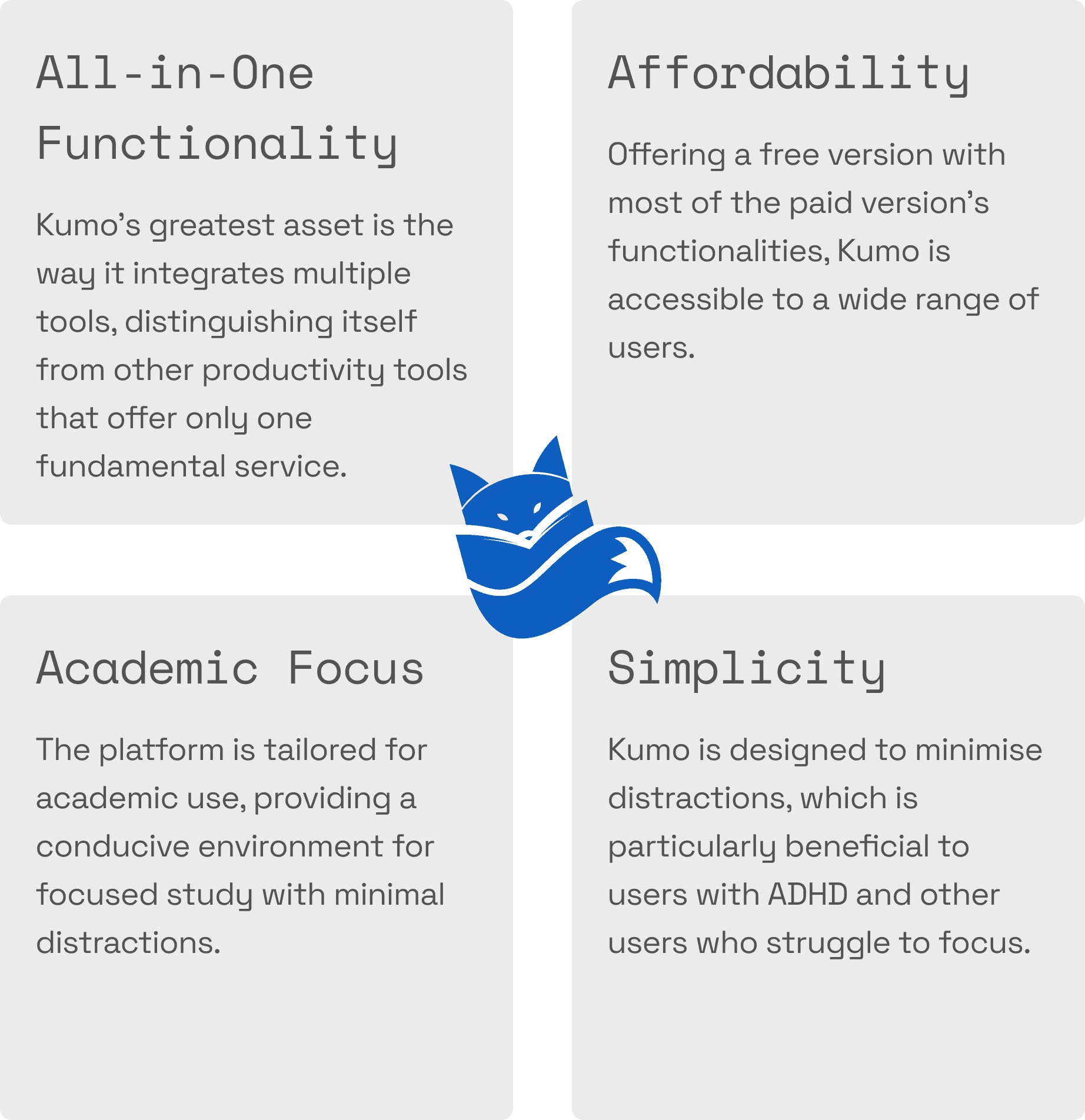 Embarking on this project with Kumo Study, we quickly delved into research to uncover the true potential of the study tool.